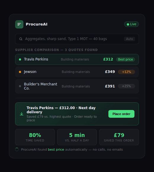 We set up quote generation that pulls from your pricing, fills in the detail, and sends a professional quote in your name — cutting hours of work down to minutes.